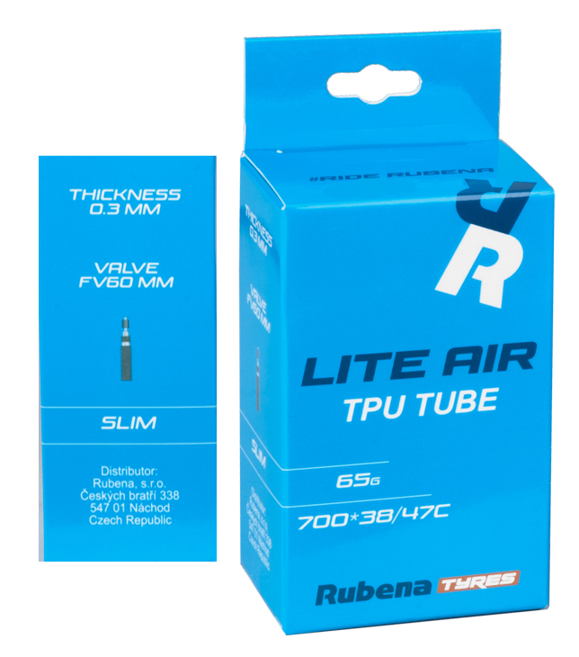 - duša TPU (termoplastický polyuretán) je flexibilný a odolný materiál s vlastnosťami gumy a plastu, ultra nízka hmotnosť, vysoká odolnosť (materiál je veľmi odolný proti prepichnutiu), nízky valivý odpor, hmotnosť 68g, šírka 42mm, hrúbka steny 0,3mm. Dôležité pokyny na použitie: nikdy nefúkajte dušu mimo plášť na viac ako 0,5 baru, nepoužívajte TPU duše na kolesách s ráfikovými brzdami, pri inštalácii sa uistite, že sa duša nedostane medzi ráfik a plášť.
