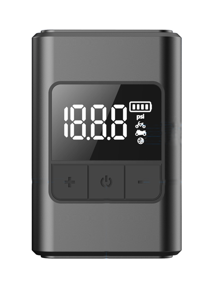 mini akumulátorový kompresor, maximálny tlak 120 PSI, vhodné pre ventily AV, FV, ihla na loptu, dobíjanie USB-C, indikátor stavu batérie, batéria Li-Pol 1300 mAh, bezkefový motor 60W, hmotnosť 160g, rozmer 76x51mm,