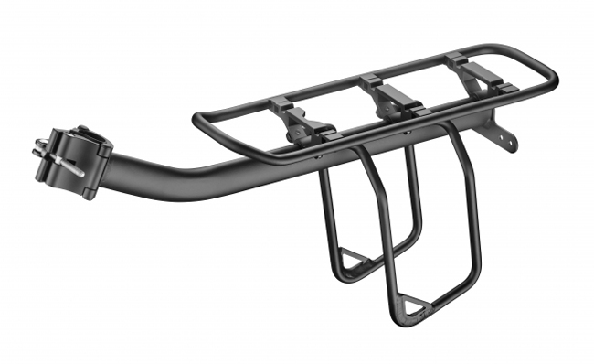 hliníkový zadný nosič na sedlovku na systém MIK, otvárateľná objímka pre jednoduchšiu montáž na sedlovku, pre sedlovku 25,4–31,8 mm, držiak na zadné svetlo alebo odrazku, farba matná čierna, max. nosnosť: 10 kg