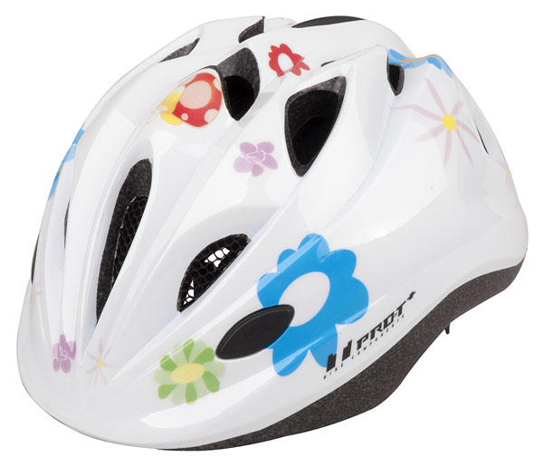detská prilba v In mold prevedení, nastevenie veľkosti pomocou kolieska, hmotnosť 185g, 12 vetracích otvorov, sieťka